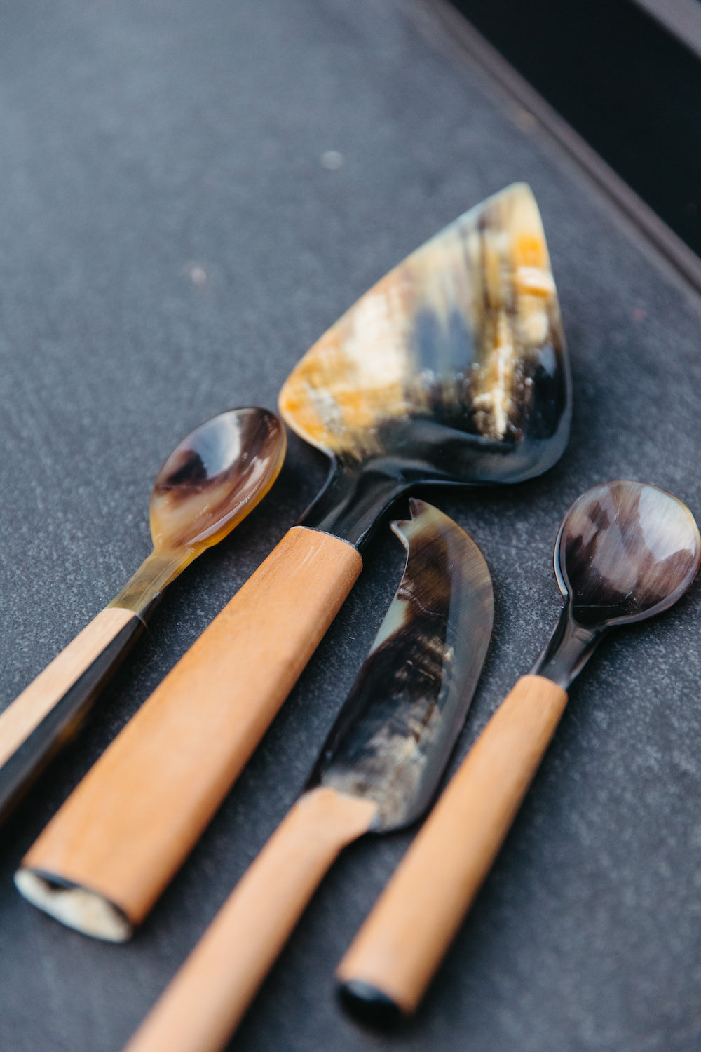 Haiti Design Co partner Andre Paul Lefond has been hand-crafting products from ethically-gathered horn and bone for over 34 years. He manages his own workshop, employing 30 men. He acts as a mentor for artisans getting their business going. His process starts with raw goat and cow horns purchased as waste from the local butcher. The material is then heated, molded, sanded, and polished to create a flawless finished product.